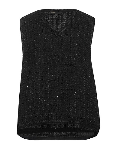 Top, Tweed, einfarbig, Pailletten, V-Ausschnitt, ärmellos