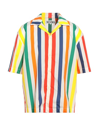 Hemd mit normaler Passform, Tuch, Streifen, ohne Applikationen, Klassischer Kragen, kurze Ärmel, Knopfverschluss, Saum mit Seitenschlitz