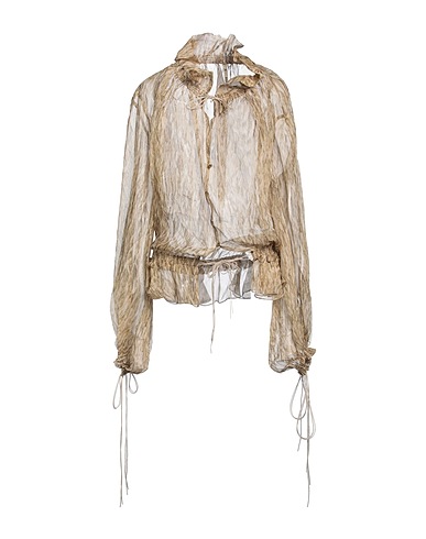 Hemd mit Rüschen, Chiffon, zweifarbiger Print, ohne Applikationen, V-Ausschnitt, lange Ärmel, Knopfverschluss, Handwäsche, Trockner ungeeignet