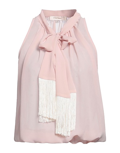 Bluse mit Schleife, Krepp, Fransen, Brand Logo, Einfarbig mit Applikationen, Schleifenausschnitt, ärmellos, ohne Taschen