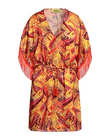 Kaftan-Oberteil, Satin, Animal-Print, Fransen, V-Ausschnitt, kurze Ärmel, Ohne Taschen