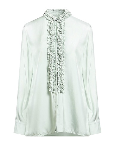 Hemd mit Rüschen, Satin, Rüschen, Einfarbig mit Applikationen, chinesischer Kragen, lange Ärmel, Sportmanschetten mit Knöpfen, Verschluss mit verdeckten Knöpfen, Ohne Taschen, Enthält nichttextile Teile tierischen Ursprungs., Chemische Reinigung, Trockner ungeeignet