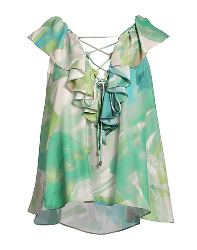 Krepp, Brand Logo, Multicolor-Print, tiefer Ausschnitt, kurze Ärmel, ohne Taschen, Top mit Rüschen