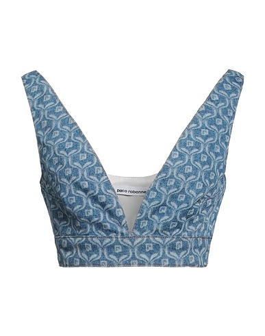 Denim, ohne Applikationen, zweifarbiger Print, V-Ausschnitt, ärmellos, Verschluss mit Häkchen, ohne Taschen, Crop Top, eng geschnitten