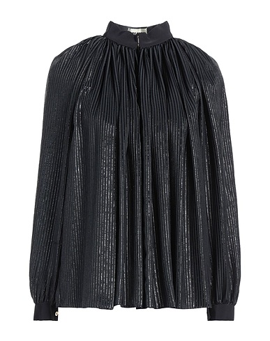 Krepp, Lamé, ohne Applikationen, einfarbig, Rollkragen, lange Ärmel, Sportmanschetten mit Knöpfen, ohne Taschen, Top
