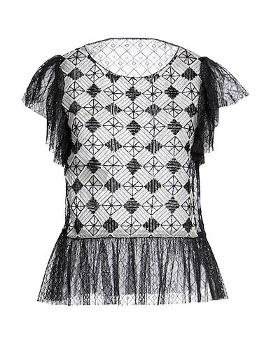 Spitze, Pailletten, Perlen, zweifarbiger Print, Rundhalsausschnitt, kurze Ärmel, Ohne Taschen, Peplum-Top