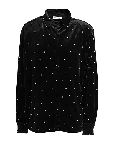 Hemd, Samt, Einfarbig mit Applikationen, Kristalle, Klassischer Kragen, lange Ärmel, Knopfverschluss, Ohne Taschen, Chemische Reinigung, nicht Bleichen, Trockner ungeeignet