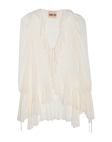 Hemd mit Rüschen, Krepp, einfarbig, Rüschen, tiefer Ausschnitt, lange Ärmel, Knopfverschluss, Handwäsche oder Trockenreinigung, nicht Bleichen, Trockner ungeeignet