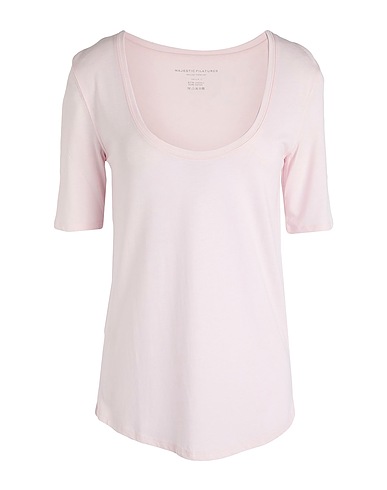 Basic-T-Shirt, Jersey, ohne Applikationen, einfarbig, weiter Kragen, kurze Ärmel, Handwäsche oder Trockenreinigung, Trockner ungeeignet