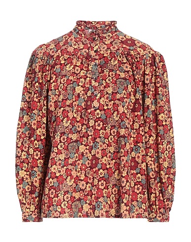 Bluse im Boho-Stil, Tuch, ohne Applikationen, Blumenmuster, chinesischer Kragen, lange Ärmel, Sportmanschetten mit Knöpfen, Knopfverschluss, Ohne Taschen, Handwäsche oder Trockenreinigung, nicht Bleichen, Trockner ungeeignet