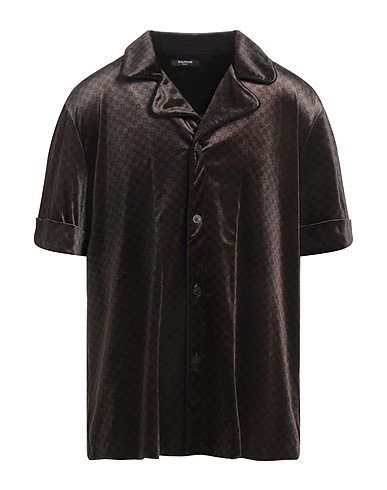 Hemd mit normaler Passform, Chenille, Brand Logo, Logomuster, Klassischer Kragen, kurze Ärmel, Knopfverschluss, Ohne Taschen, Stretch, Maschinenwäsche, nicht Bleichen, Trockner ungeeignet