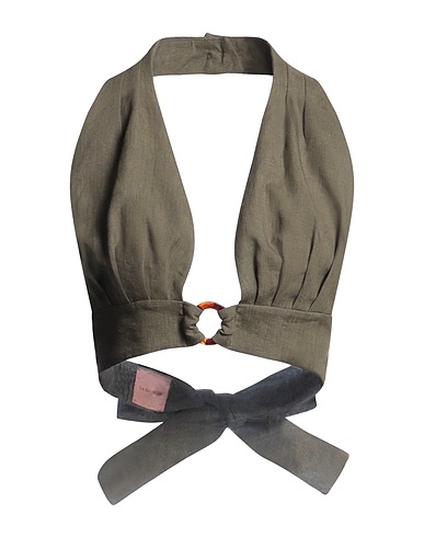 Crop Top, Leinen, Einfarbig mit Applikationen, Rückenausschnitt, Verziert, tiefer Ausschnitt, ärmellos, Chemische Reinigung, nicht Bleichen, Trockner ungeeignet, Stil und Komfort, ideal für Ihren nächsten Urlaub oder ein entspanntes Wochenende am Meer