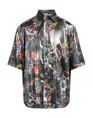 Hemd mit normaler Passform, Satin, Multicolor-Print, Brand Logo, Klassischer Kragen, kurze Ärmel, Knopfverschluss, Chemische Reinigung, nicht Bleichen, Trockner ungeeignet, Die Bekleidung dieses Brands fällt groß aus