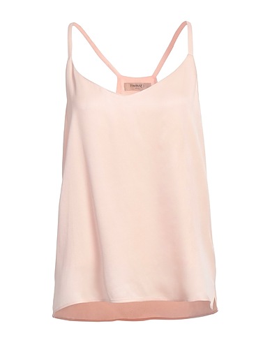 Tops de tirantes, Satin, einfarbig, Brand Logo, tiefer Ausschnitt, ärmellos, gefüttert, Chemische Reinigung, nicht Bleichen, Trockner ungeeignet