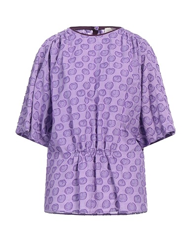 Top, Tuch, Jacquard, Punkte, Mit Raffung, Rundhalsausschnitt, kurze Ärmel, 1 Knopf, Chemische Reinigung, nicht Bleichen, Trockner ungeeignet