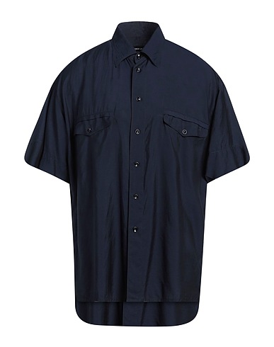 Hemd mit normaler Passform, Tuch, einfarbig, ohne Applikationen, Klassischer Kragen, kurze Ärmel, Knopfverschluss, Doppelte Tasche, Chemische Reinigung, nicht Bleichen, Trockner ungeeignet
