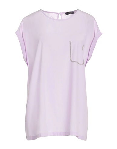 Top, Krepp, Einfarbig mit Applikationen, Verziert, Rundhalsausschnitt, kurze Ärmel, 1 Knopf, Stretch, Handwäsche oder Trockenreinigung, nicht Bleichen, Trockner ungeeignet
