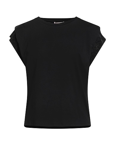T-Shirt, Jersey, Einfarbig mit Applikationen, Kristalle, Brand Logo, Rundhalsausschnitt, kurze Ärmel, angeschnittener Ärmel, Maschinenwäsche, nicht Bleichen, Trockner ungeeignet