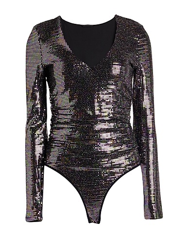 Jersey, Mit Metallic-Effekt, Multicolor-Print, Verziert, V-Ausschnitt, lange Ärmel, Stretch, Handwäsche, nicht Bleichen, Trockner ungeeignet