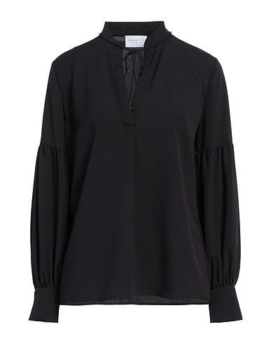 Top, Krepp, einfarbig, ohne Applikationen, tiefer Ausschnitt, lange Ärmel, Sportmanschetten mit Knöpfen, Maschinenwäsche oder Reinigung, nicht Bleichen, Trockner ungeeignet