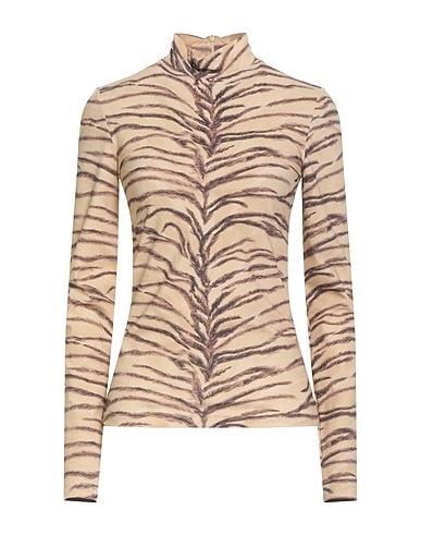 Top, Kunstjersey, Tigermuster, ohne Applikationen, Rollkragen, lange Ärmel, Reißverschluss, Stretch, Maschinenwäsche oder Reinigung, nicht Bleichen, Trockner ungeeignet