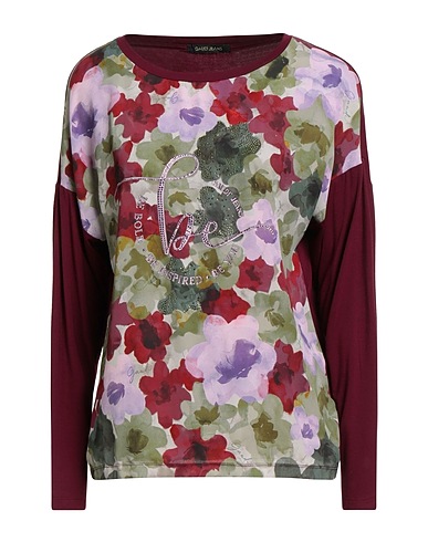 Top, Jersey, Krepp, Blumenmuster, Kristalle, Brand Logo, Rundhalsausschnitt, lange Ärmel, Stretch, Maschinenwäsche, nicht Bleichen, Trockner ungeeignet