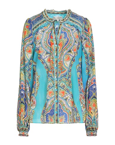 Hemd, Satin, Multicolor-Print, Smokarbeit, V-Ausschnitt, lange Ärmel, Chemische Reinigung, nicht Bleichen, Trockner ungeeignet