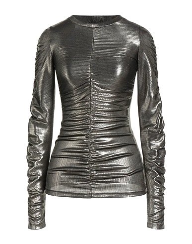 Top, Jersey, Mit Metallic-Effekt, Mit Stretch-Anteil, einfarbig, Mit Raffung, ohne Applikationen, Rundhalsausschnitt, lange Ärmel, Handwäsche, nicht Bleichen, Trockner ungeeignet, nicht bügeln