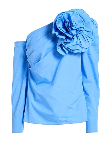 Asymmetrisches Top, Popelin, Einfarbig mit Applikationen, Plissiert, Blumenapplikationen, Mit Schulterpolstern, Sportmanschetten mit Knöpfen, Reißverschluss, Chemische Reinigung, nicht Bleichen, Trockner ungeeignet