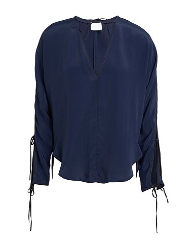 Bluse mit Schleife, Krepp, einfarbig, Mit Paspeln, Mit Cut-outs, lange Ärmel, Chemische Reinigung, nicht Bleichen, Trockner ungeeignet