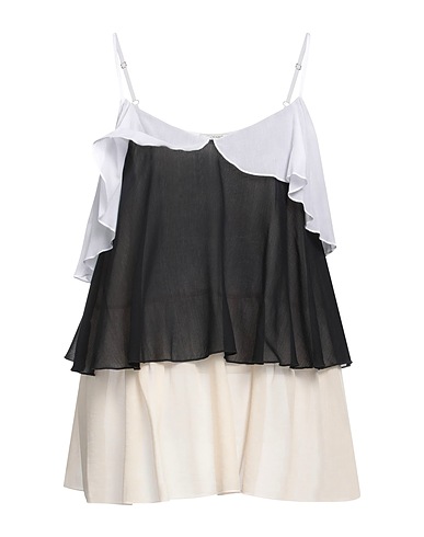 Top mit Rüschen, Krepp, Rüschen, Brand Logo, Multicolor-Print, V-Ausschnitt, kurze Ärmel, ohne Taschen