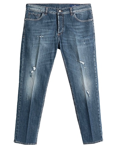 Jeans mit geradem Bein, Denim, In Distressed-Optik, Délavé-Effekt, einfarbig, Brand Logo, Dark Wash, normale Taille, Gürtelschlaufen, Röhrenjeans, Regular fit, Knopfverschluss, Fünf Taschen