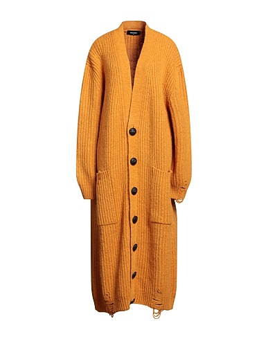 Handgestrickt, Melangestrick-Effekt, Mittelschwerer Strick, Brand Logo, einfarbig, tiefer Ausschnitt, lange Ärmel, Knöpfe, viele Taschen
