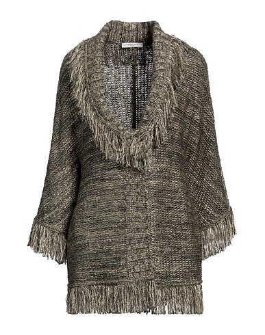 Handgestrickt, Lamé, Leichter Strick, fransen, zweifarbiger Print, V-Ausschnitt, 3/4 Arm, Druckknöpfe, viele Taschen