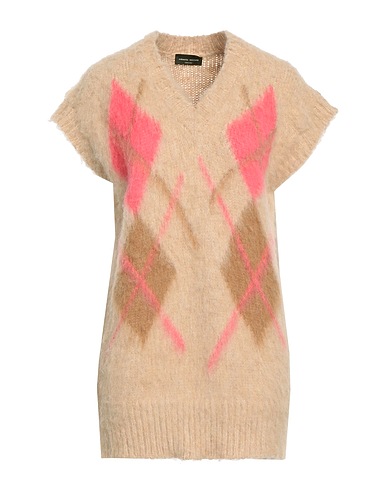 Handgestrickt, Leichter Strick, ohne Applikationen, geometrisches Muster, V-Ausschnitt, kurze Ärmel, Ohne Taschen