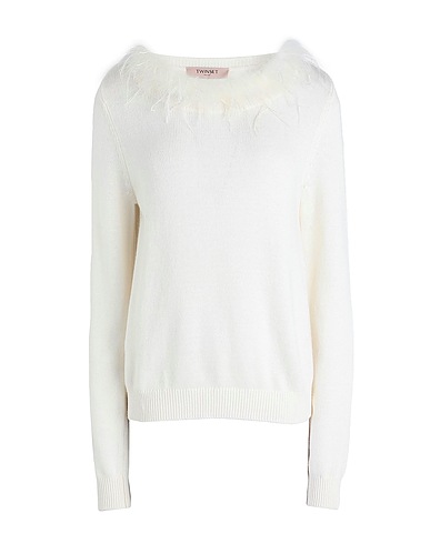 Handgestrickt, Leichter Strick, Federn, abnehmbare Applikation, Brand Logo, Einfarbig mit Applikationen, Rundhalsausschnitt, lange Ärmel, Gerippte Bündchen, Enthält nichttextile Teile tierischen Ursprungs., Handwäsche oder Trockenreinigung, nicht Bleichen, Trockner ungeeignet