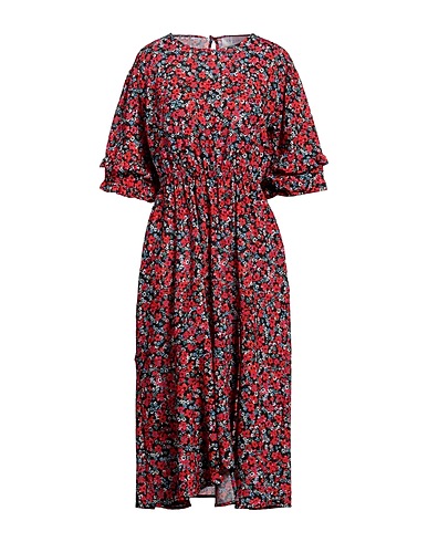 Krepp, Rüschen, Volants, Blumenmuster, Rundhalsausschnitt, kurze Ärmel, ungefüttert, 1 Knopf, ohne Taschen, Schlitz vorne, A-Linienmodell