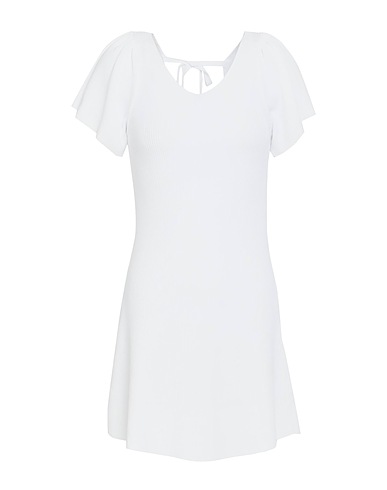 Handgestrickt, Rippenmuster, Leichter Strick, Rüschen, Bänder zum Schnüren, einfarbig, V-Ausschnitt, kurze Ärmel, Puffärmel, ungefüttert, Bleistiftmodell