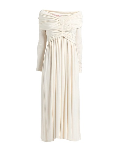 A-Linien-Kleid, Jersey, Mit Stretch-Anteil, einfarbig, Mit Drapierung, Mit Raffung, Off-Shoulder, lange Ärmel, ungefüttert, Chemische Reinigung, Trockner ungeeignet