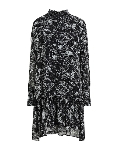 Krepp, ohne Applikationen, zweifarbiger Print, Rollkragen, lange Ärmel, Unterkleid, Reißverschluss, ohne Taschen, Modell Hemdblusenkleid