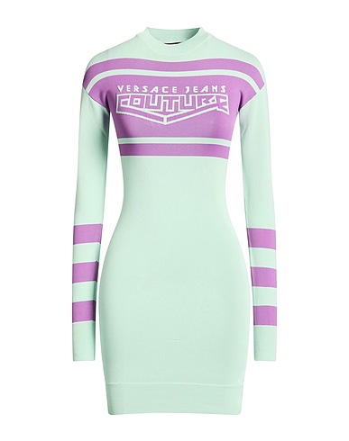 Bodycon-Kleid, Handgestrickt, Leichter Strick, zweifarbiger Print, Brand Logo, Rundhalsausschnitt, lange Ärmel, ungefüttert, Ohne Taschen, Handwäsche, nicht Bleichen, Trockner ungeeignet