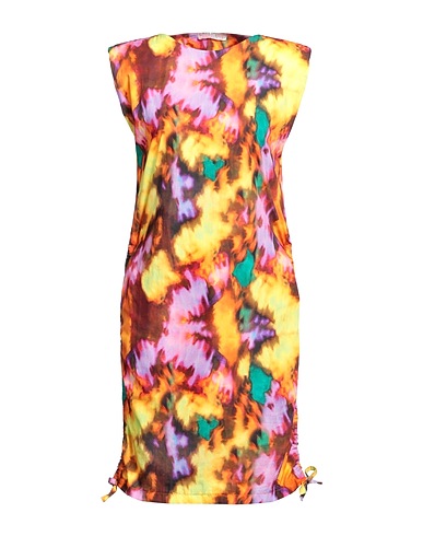 Popelin, ohne Applikationen, Multicolor-Print, Rundhalsausschnitt, kurze Ärmel, Mit Schulterpolster, ungefüttert, Reißverschluss, ohne Taschen, Kleid