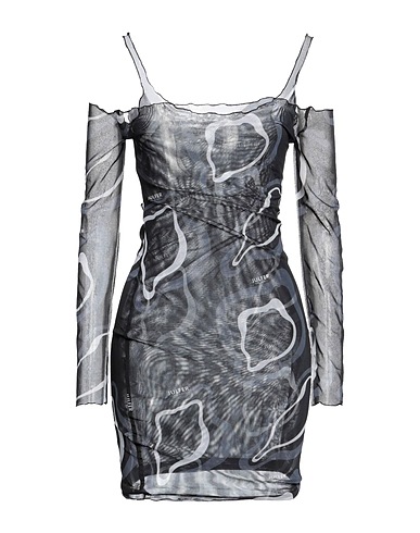 Bodycon-Kleid, Tüll, Mit Stretch-Anteil, Multicolor-Print, Gestuft, weiter Kragen, lange Ärmel, ungefüttert, Ohne Taschen