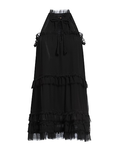 Krepp, Spitze, Volants, einfarbig, Rundhalsausschnitt, ärmellos, gefüttert, ohne Taschen, A-Linienmodell