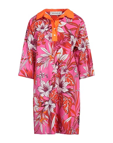 Tuch, ohne Applikationen, Hawaiimuster, Reverskragen, kurze Ärmel, ungefüttert, Knöpfe, viele Taschen, Modell Hemdblusenkleid
