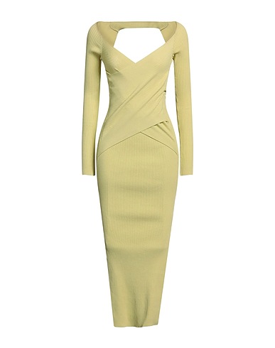 Bodycon-Kleid, Handgestrickt, Rippenmuster, einfarbig, Rückenausschnitt, tiefer Ausschnitt, lange Ärmel, ungefüttert, Ohne Taschen, Seitenschlitze