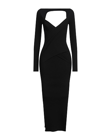 Bodycon-Kleid, Handgestrickt, Rippenmuster, einfarbig, Rückenausschnitt, tiefer Ausschnitt, lange Ärmel, ungefüttert, Ohne Taschen, Seitenschlitze