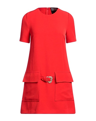 Tuch, Brand Logo, einfarbig, Rundhalsausschnitt, kurze Ärmel, ungefüttert, Verschluss mit Häkchen, Reißverschluss, viele Taschen, Stretch, A-Linien-Kleid