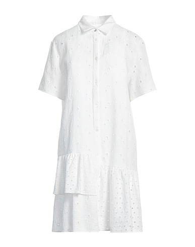 Lochstickerei, ohne Applikationen, einfarbig, Klassischer Kragen, kurze Ärmel, gefüttert, Knopfverschluss, ohne Taschen, Enthält nichttextile Teile tierischen Ursprungs., Maschinenwäsche, Trockner ungeeignet, nicht Bleichen, Modell Hemdblusenkleid