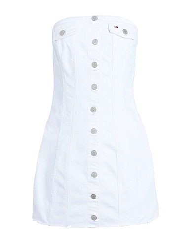 Denim, Brand Logo, einfarbig, Trägerlos, Colored Wash, ärmellos, ungefüttert, Reißverschluss, 1 Knopf, Ohne Taschen, Unverarbeiteter Saum, Maschinenwäsche, nicht Bleichen, Trockner geeignet, Bodycon-Kleid